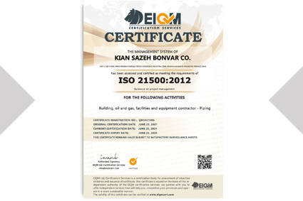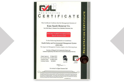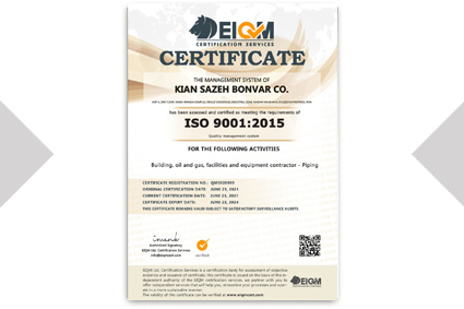 Certificates and commendations awarded to Kian Sazeh Bonvar Company by various clients.
